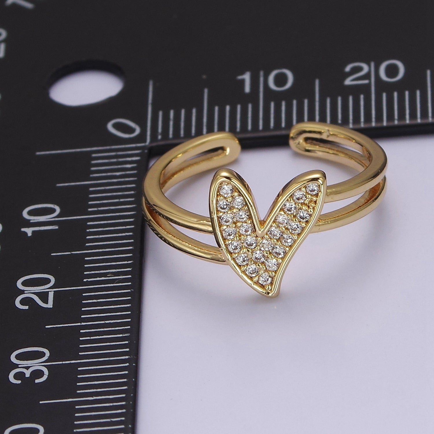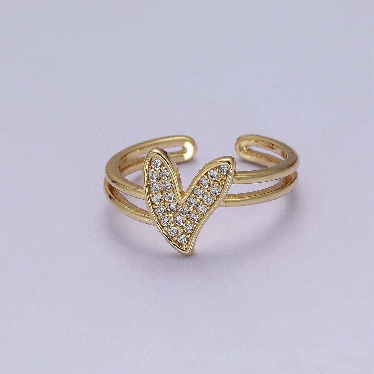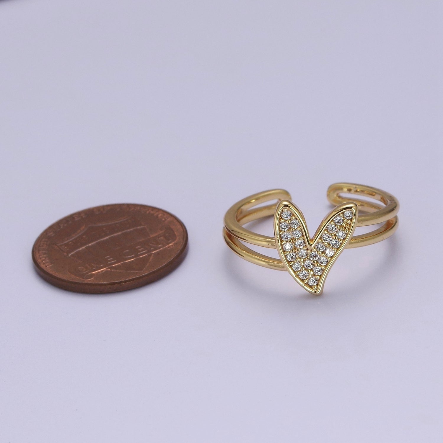 (Out of Stock) Dainty Double Band Heart Ring with Clear Cz Stone Gold Filled Open Adjustable