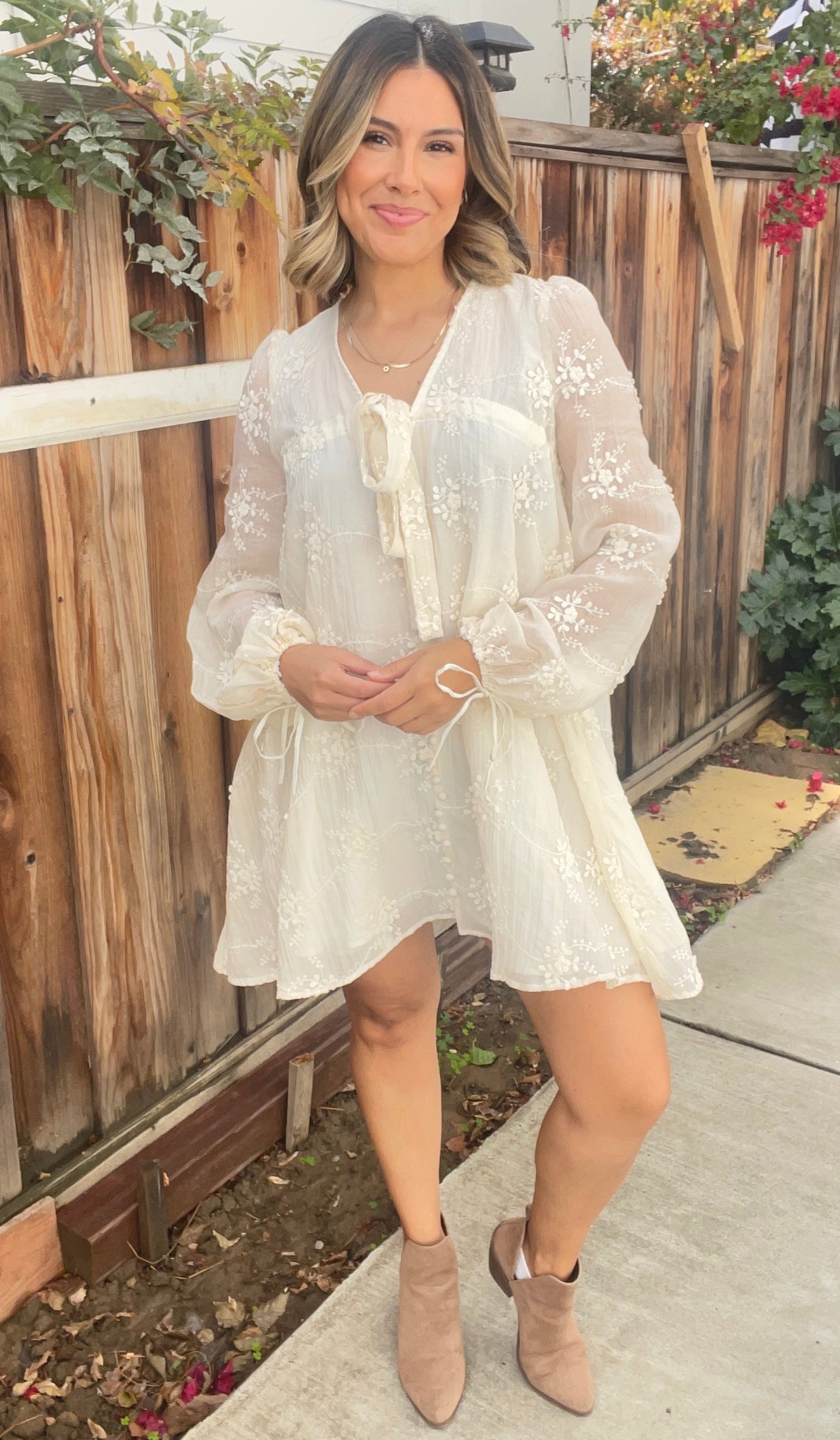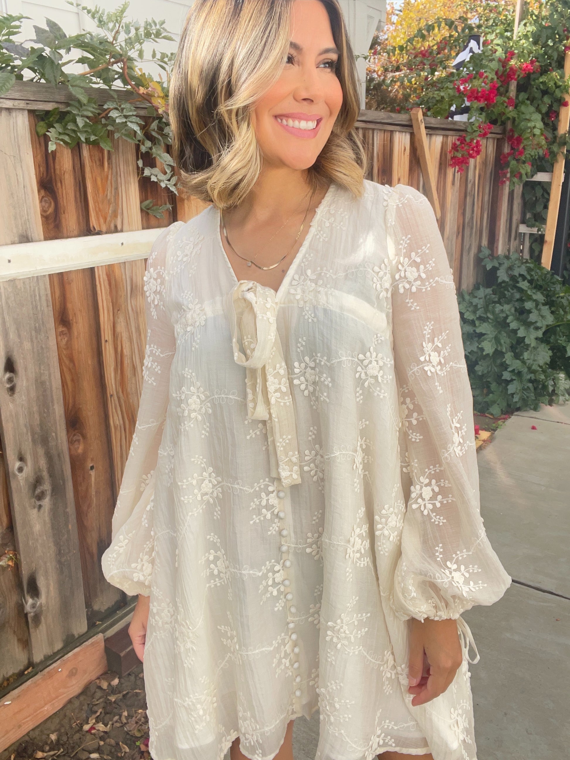 Embroidered L/S Mini Dress