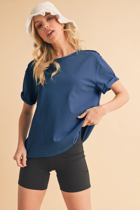 The Molly Baby Tee combines cozy comfort with contemporary style, featuring exposed seams that give a fresh, modern twist to a timeless design. Ideal for those seeking a laid-back yet chic look, this tee effortlessly elevates your everyday wardrobe.