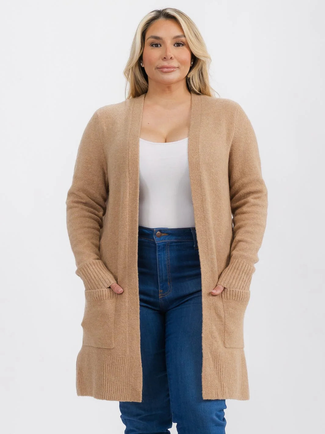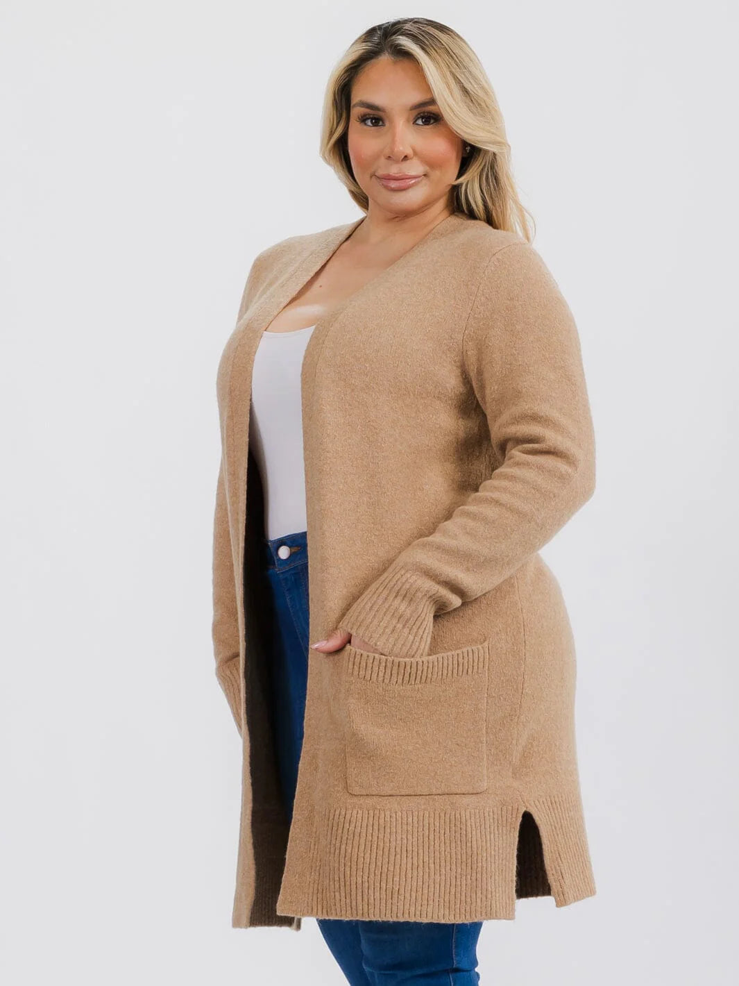 This Plus Size Long Sleeve Open Front Cardigan combines comfort and style with its soft, breathable fabric and relaxed fit. Perfect for layering over any outfit, it adds warmth and versatility to your wardrobe. Ideal for casual outings or cozy evenings, it pairs well with jeans, dresses, or loungewear, and comes in a variety of colors.